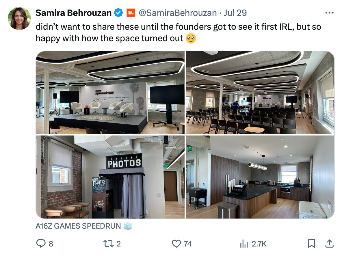 Last week we kicked off in-person events for the third round of SPEEDRUN, our Games X Tech startup accelerator, at our brand-new Santa Monica a16z office.