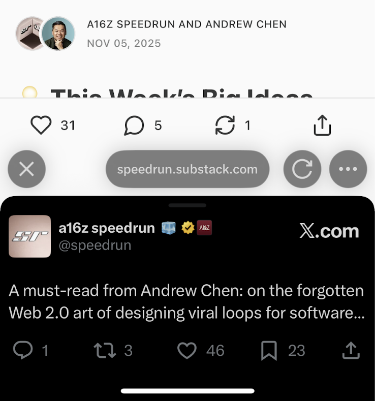 For many years, we advised startups to not bother posting direct URL links on X. Due to algorithmic suppression, those posts never got enough eyeballs to be worth the effort. With this latest update, it seems X’s leadership team is opening a window for external links to work. Now, when a user clicks on a link, it opens up a minibrowser within the app, where users can still scroll, but on the bottom, they can like, retweet, etc.