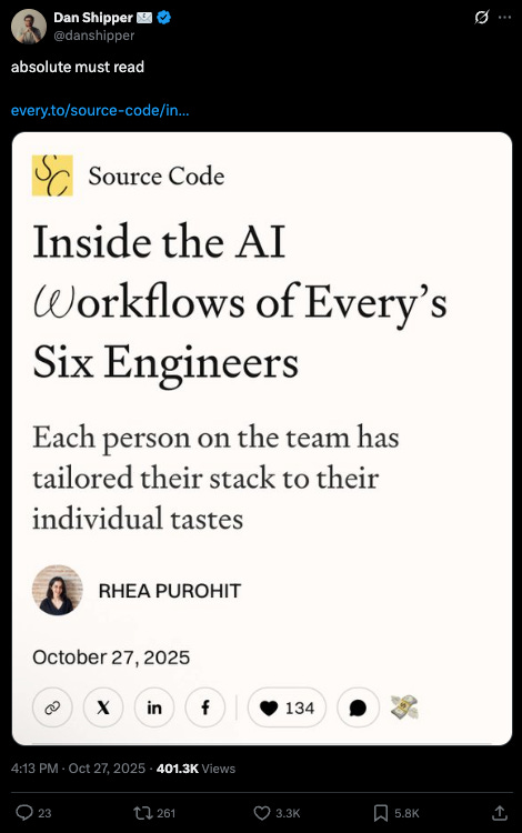 We’ll define all those terms in a sec, but an example is the most helpful way to show this. Take for example this post by Dan Shipper, where he uses a pithy hook accompanied by an image to make people want to click.